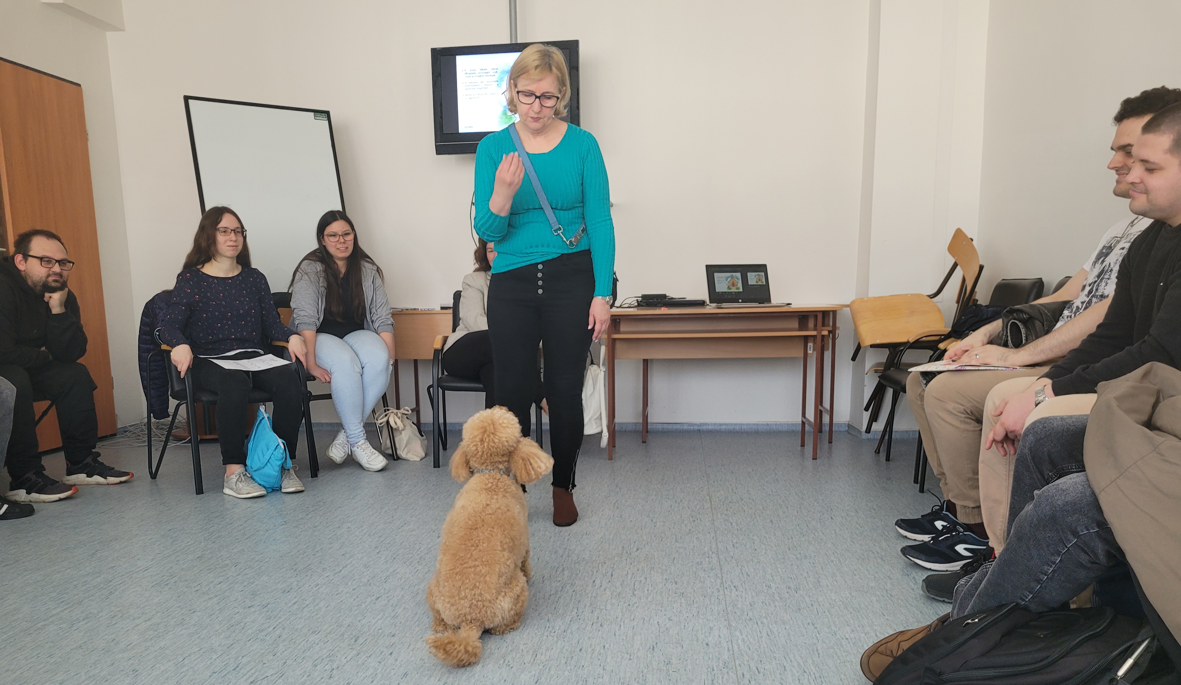 2024. 03. 21. 10:00-12:00 a B I. 138/b teremben Dr. Bodnárné Szűrös Zsuzsanna, fejlesztő pedagógus: Az állatasszisztált terápiák hatása a gyerekek fejlődésére címmel tartott előadást terápiás kutya bemutatásával egybekötve.